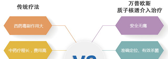 万普欧斯质子核透介入治疗以强有效的渗透疗效,通过核透介入对人体胃肠病变部位的神经、体液、内分泌的多项双圆调节作用,彻底杀灭病菌以及致病因子。促进胃肠组织和细胞修复、再生,从而达到精确治疗胃肠疾病的目的.